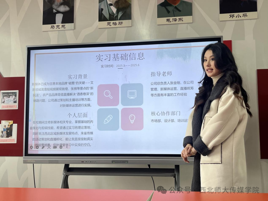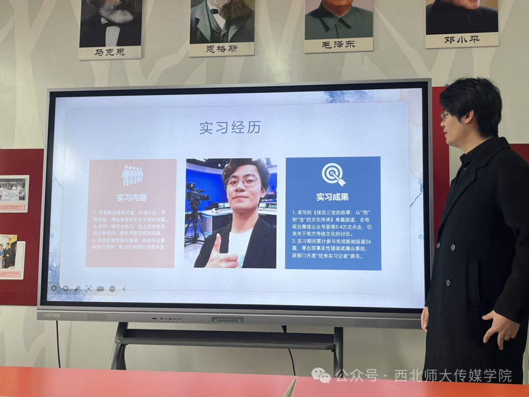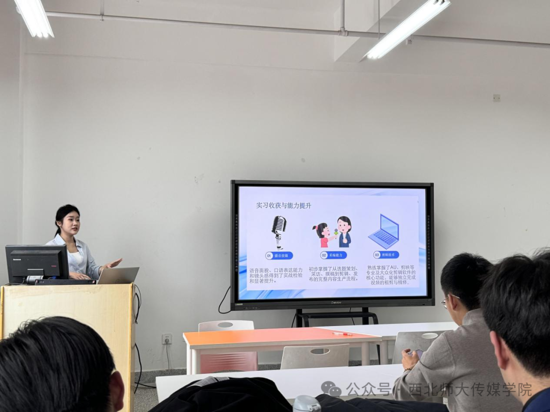 针对实习中遇到的挑战,如直播突发状况应对“新闻稿临场修改”“跨平台内容策划”等,同学们详细阐述了自己的思考与解决方案,汇报内容紧扣专业培养目标,充分体现了理论与实践的深度融合。
